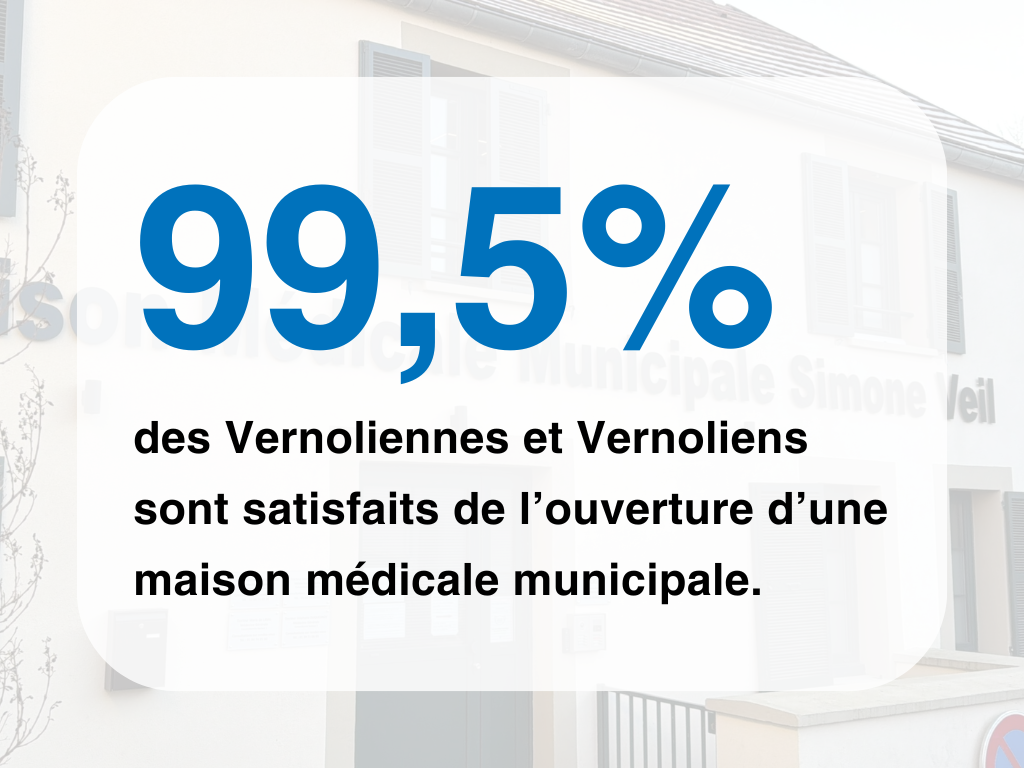 - 99,5 % des Vernoliennes et des Vernoliens sont satisfaits de l’ouverture d’une maison médicale municipale ; même si l’offre est encore inférieure à la demande.