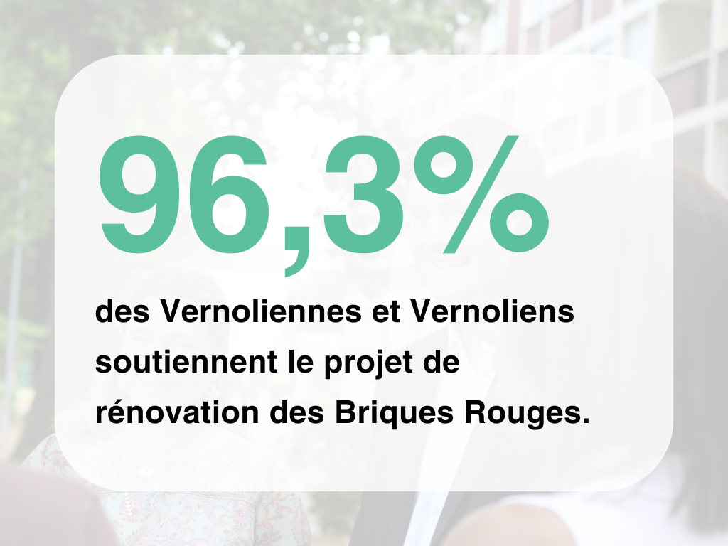- 96,3% des Vernoliennes et des Vernoliens soutiennent le projet de rénovation des Briques Rouges.