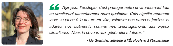 - Nous persévèrerons à développer les différentes trames (vertes, bleues…), à planter chaque année, à protéger nos arbres et à valoriser notre patrimoine naturel (refonte des parcs, des jeux, parking enherbés, protection des espaces fragiles, etc).